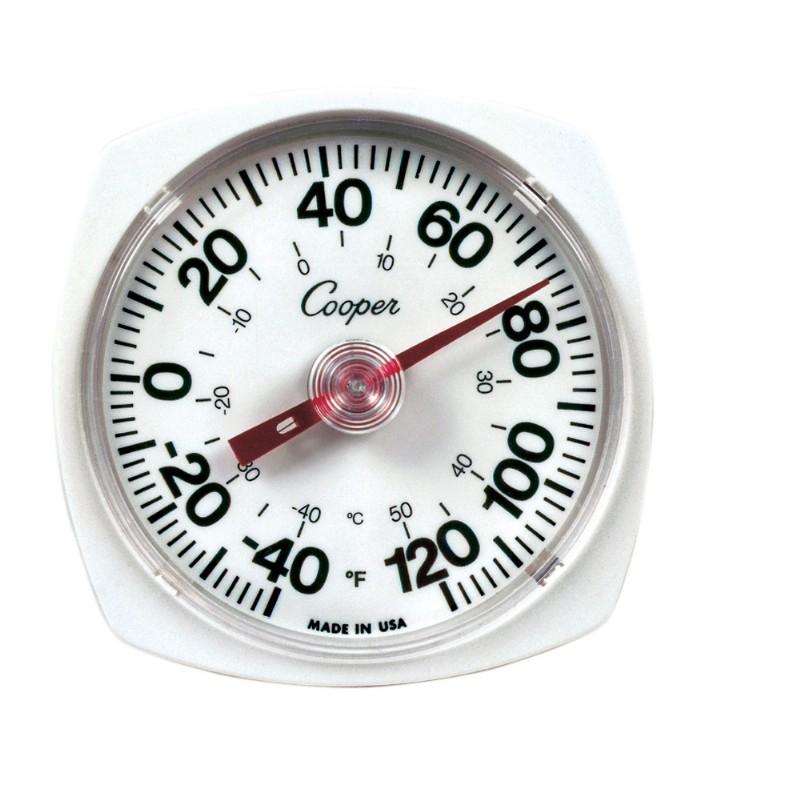 The Cooper-Atkins model 250 is a 5" diameter thermometer can be mounted indoors or outdoors. may be used outdoors while mounted to a window frame for thru the glass viewing of the outside temperature. To ensure accurate readings, do not mount the thermometer where it will be exposed to direct sunlight. Mounting bracket and hardware included.
