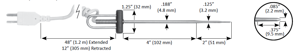 6" DuraNeedle Temperature Probe with Coil Cable
