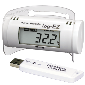 The Wireless Dongle is a USB device that enables wireless communication between the log-EZ units and a PC. Please use the dongle by inserting into a USB port of the PC. The dongle can also be used as a Repeater if you connect it to the AC adaptor (optional).Easy Checking of Data in Graph FormView current readings and previously recorded data in graph form.Temperature and humidity data measured and recorded by the log-EZ can be monitored in a graph on a PC in which the software "log-EZ for Windows" has been installed.