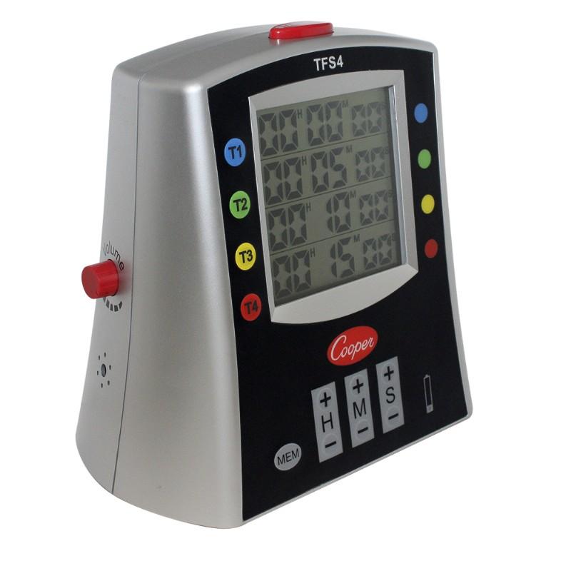 The Cooper-Atkins TFS4 timer with light alarm is a high performance and durable multi-station timer that has 4 different timer modes that can be used independently or simultaneously. Flashing lights and a loud adjustable volume make this digital quad timer ideal for applications where extra loud or soft volumes are required.